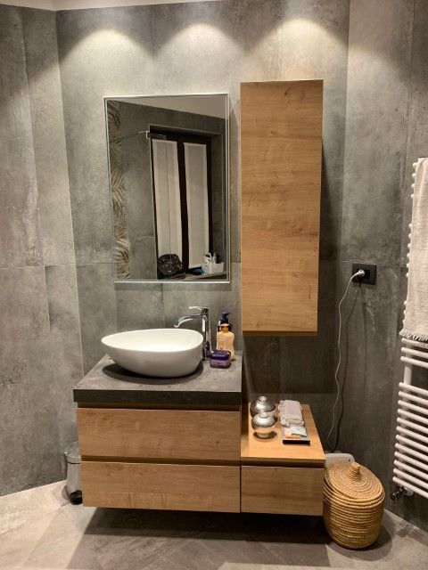 Il lavoro comprende la demolizione di rivestimenti , massetto e sanitari, per poi proseguire con il rifacimento delle nuove impiantistiche e la nuova caldana e rasatura pareti dove necessario, imbiancatura , fornitura e posa piastrelle , sanitari box-vasca doccia , termo arredo e quant’altro a richiesta del cliente.